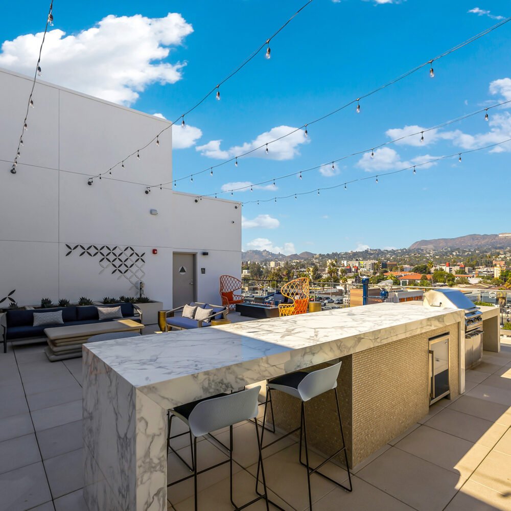 With spacious 2-bedroom 2-bathroom apartments spanning 1131 sq ft, you’ll have ample room to live and thrive. Boyka Stay East Hollywood Apartments offers amenities tailored to enhance every facet of your life, including your pets. Our community features a rooftop deck & bar with amazing views, a modern fitness center with a yoga studio, and a pool deck with an outdoor lounge and BBQ area.
